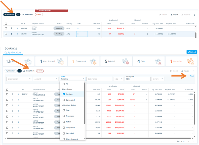 Toggle the "My Allocations" filter to show only allocations where you, as the current user, are involved.