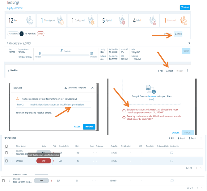 Importing Allocations The import function supports both bulk and targeted allocation processing: