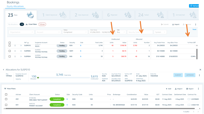 To view the individual allocations within a bulk order, simply double-click on the relevant suspense order. This will expand the record and display a breakdown of each allocation associated with that bulk order.